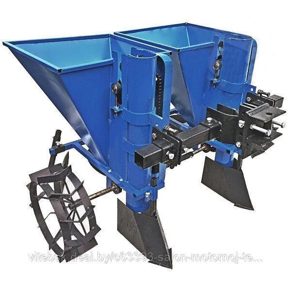 Картофелесажалка 2КСТ-01-01 – это высокоэффективное навесное оборудование для двухрядной посадки картофеля, предназначенное для использования с мини-тракторами мощностью от 12 л.с. Система крепления одноточечного типа обеспечивает совместимость с техникой марок НЕВА, Скаут и Shtenli.